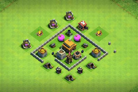 At Town Hall 3 , the game is still relatively early, but the basics of base building are crucial. You’re no longer just throwing buildings down haphazardly; you’re starting to think about defense. You’ve got access to cannons, archer towers, and a few other key defensive structures. The main goal at this stage is to protect your resources (gold and elixir) and your Town Hall. Here’s why base design is super important:
