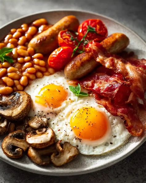 Once the sausages and bacon are nearly done, it’s time for the supporting cast. Add your mushrooms to the pan, perhaps in a little of the reserved fat, and fry them until golden. Next, the tomatoes. Place your halved tomatoes cut-side down in the pan and let them char slightly. If you’re having black pudding, now’s the time to add it; it fries up beautifully in a few minutes per side. For the eggs, you can either fry them in a separate, clean pan with a little oil or butter, or if you’re feeling brave and have enough space, carefully nestle them into the remaining fat in your main pan. Cook them to your liking – sunny-side up with a runny yolk is classic. While everything is frying, pop your bread in the toaster, or if you’re going for the full experience, fry some slices in the bacon fat until they’re golden and delicious. Heat up your beans in a small saucepan. The final assembly is crucial . Arrange everything artfully on a warm plate. Don’t just dump it in a pile! A little space between items allows them to shine. Remember, the goal is a symphony of textures and flavors, not a chaotic jumble. Serve immediately with a steaming mug of tea or a strong coffee. Trust me, guys, this is how you do breakfast right!