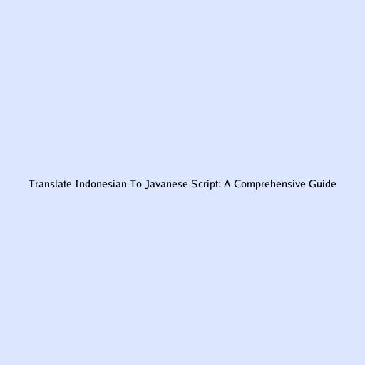 Indonesia Translate to Javanese Script: A Comprehensive Guide