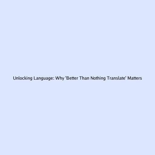Unlocking Language: Why 'Better Than Nothing Translate' Matters