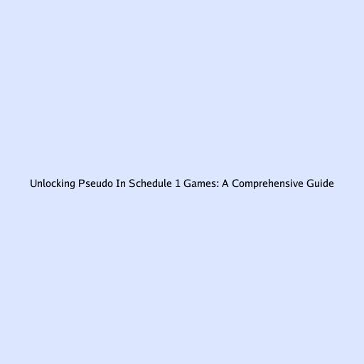 Unlocking Pseudo In Schedule 1 Games: A Comprehensive Guide