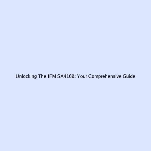 Unlocking the IFM SA4100: Your Comprehensive Guide