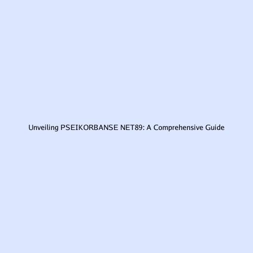 Unveiling PSEIKORBANSE NET89: A Comprehensive Guide