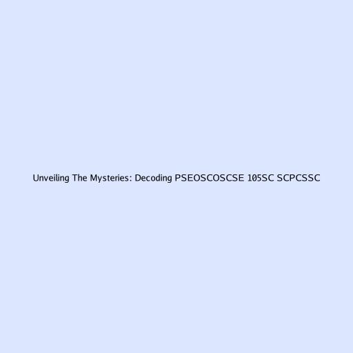 Decoding PSEOSCOSCSE 105SC SCPCSSC: A Comprehensive Guide