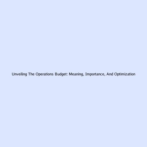 Unveiling the Operations Budget: Meaning, Importance, and Optimization