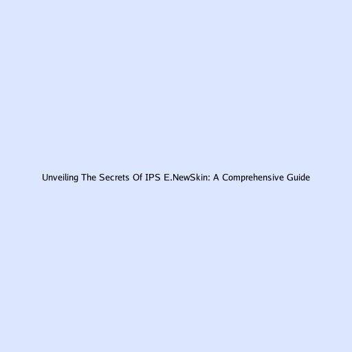Unveiling The Secrets Of IPS E.NewSkin: A Comprehensive Guide