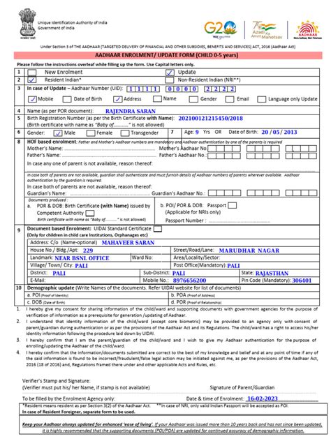 - Gather Required Documents: Before heading to the Enrolment Center, make sure you have all the necessary documents. You’ll need your child’s original Aadhaar card, as well as proof of address and proof of relationship documents. Accepted documents for proof of relationship include birth certificates, passports, or any government-issued document that proves the relationship between the child and the parent or guardian. Having all the documents ready will ensure a hassle-free experience at the center. Double-check the UIDAI website for the complete list of accepted documents to avoid any last-minute surprises.