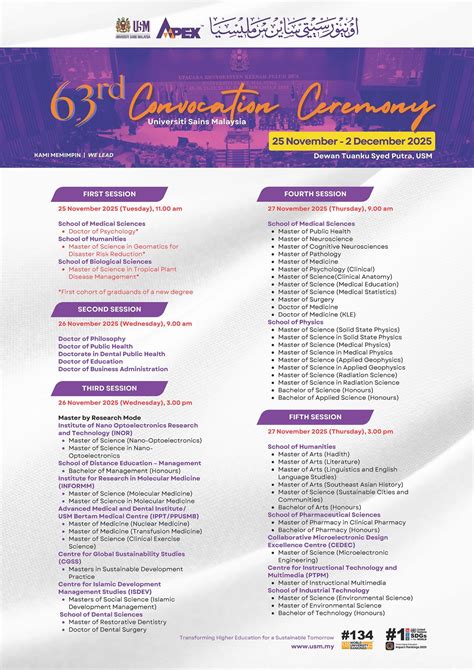 What’s up, graduates and future scholars of Universiti Sains Malaysia (USM)! Get ready, because the USM Convocation 2025 is just around the corner, and we’re here to spill all the tea on what you need to know. This isn’t just any graduation ceremony; it’s a monumental milestone, a culmination of years of hard work, late-night study sessions fueled by instant noodles, and countless cups of coffee. Whether you’re beaming with pride after earning your undergraduate degree or celebrating the completion of your postgraduate journey, this event is your moment to shine. USM, known for its vibrant academic environment and commitment to producing well-rounded individuals, always puts on a spectacular show for its graduating cohorts. The air is always electric with excitement, and the campus buzzes with a mix of joy, relief, and perhaps a little bit of nostalgia. This year’s convocation is set to be no different, promising a memorable experience for graduates, their families, and the entire USM community. We’re talking about the official recognition of your academic achievements, the chance to don those fancy graduation robes, and, of course, the opportunity to create lasting memories with your batchmates. So, let’s dive deep into what the USM Convocation 2025 entails, from the essential dates and venues to the nitty-gritty details that will make your special day absolutely perfect. Get ready to celebrate your hard-earned success in style!